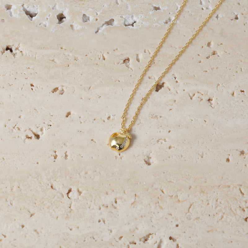 Playful yet chic, these apple-shaped pendant add a touch of whimsy to any look. Sparkling stones run along one side, mimicking a crisp bite of shine. The polished gold finish makes them versatile enough for everyday wear while still standing out as a conversation piece. Fresh, fun, and subtly glamorous — they’re the sweetest accessory you’ll own.