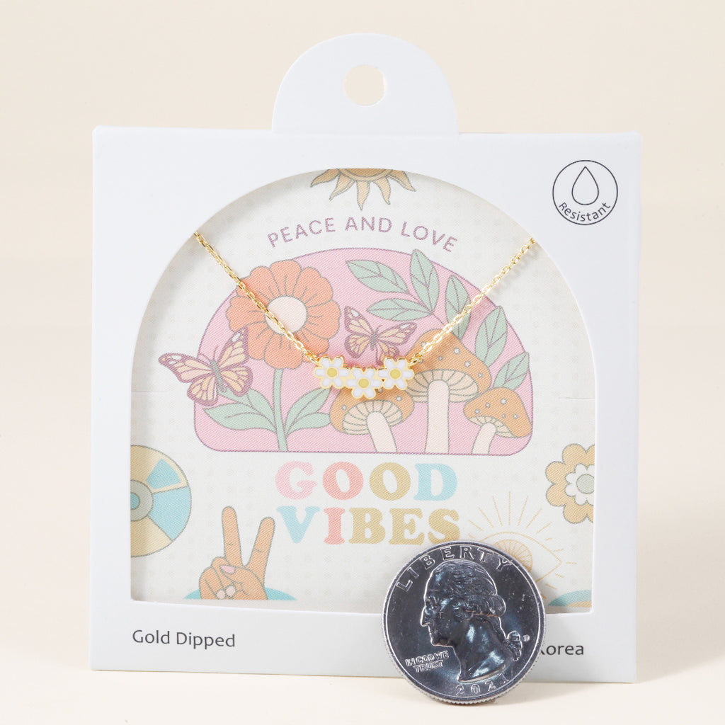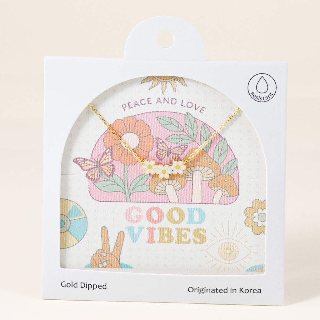 Spread peace, love, and flower power with these groovy daisy necklace. With a retro-inspired card that reads “Good Vibes,” this necklace is the perfect match to the '70s and perfect for free spirits, festival lovers, or anyone who believes in sunny days and positive energy. Lightweight, stylish, and full of charm!