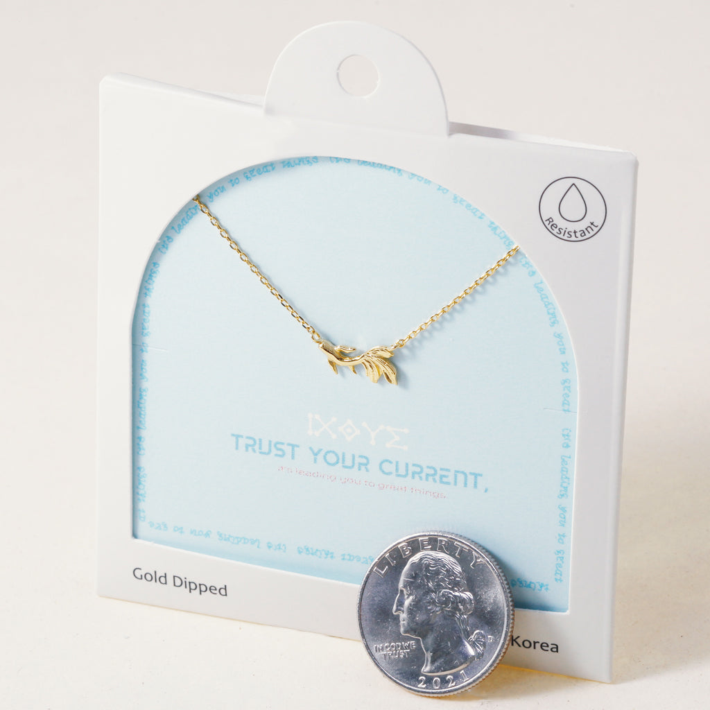 Let the waves of life carry you forward. This gold-dipped fish pendant, gliding through gentle ocean blues, symbolizes trust in your own journey and the belief that calm waters or strong currents, you’ll always find your way. Go with the flow, they say.