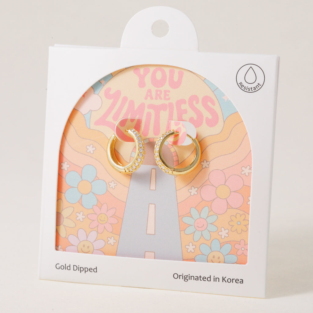 Bold, bright, and totally unstoppable. These sparkling hoops remind you that there are no limits when you lead with confidence. 18K gold dipped for that extra shine, because you were made to stand out.