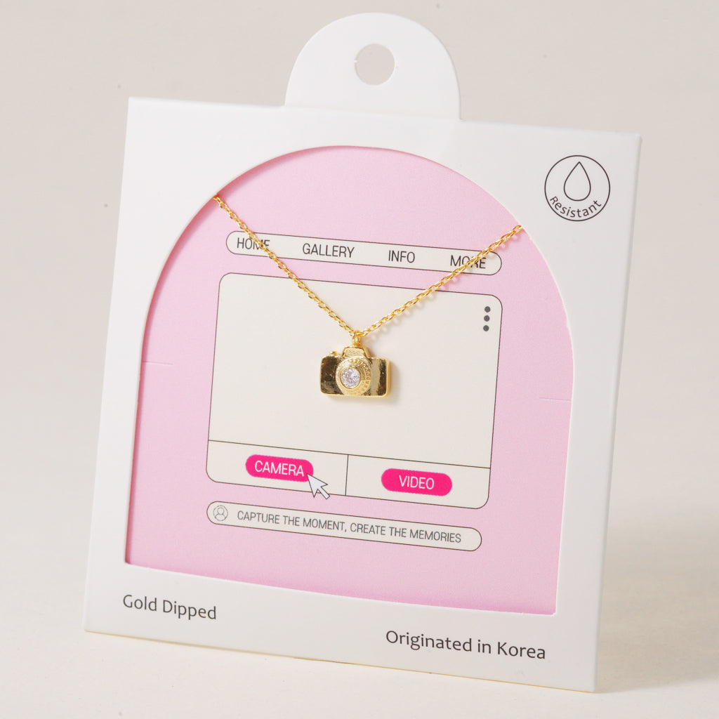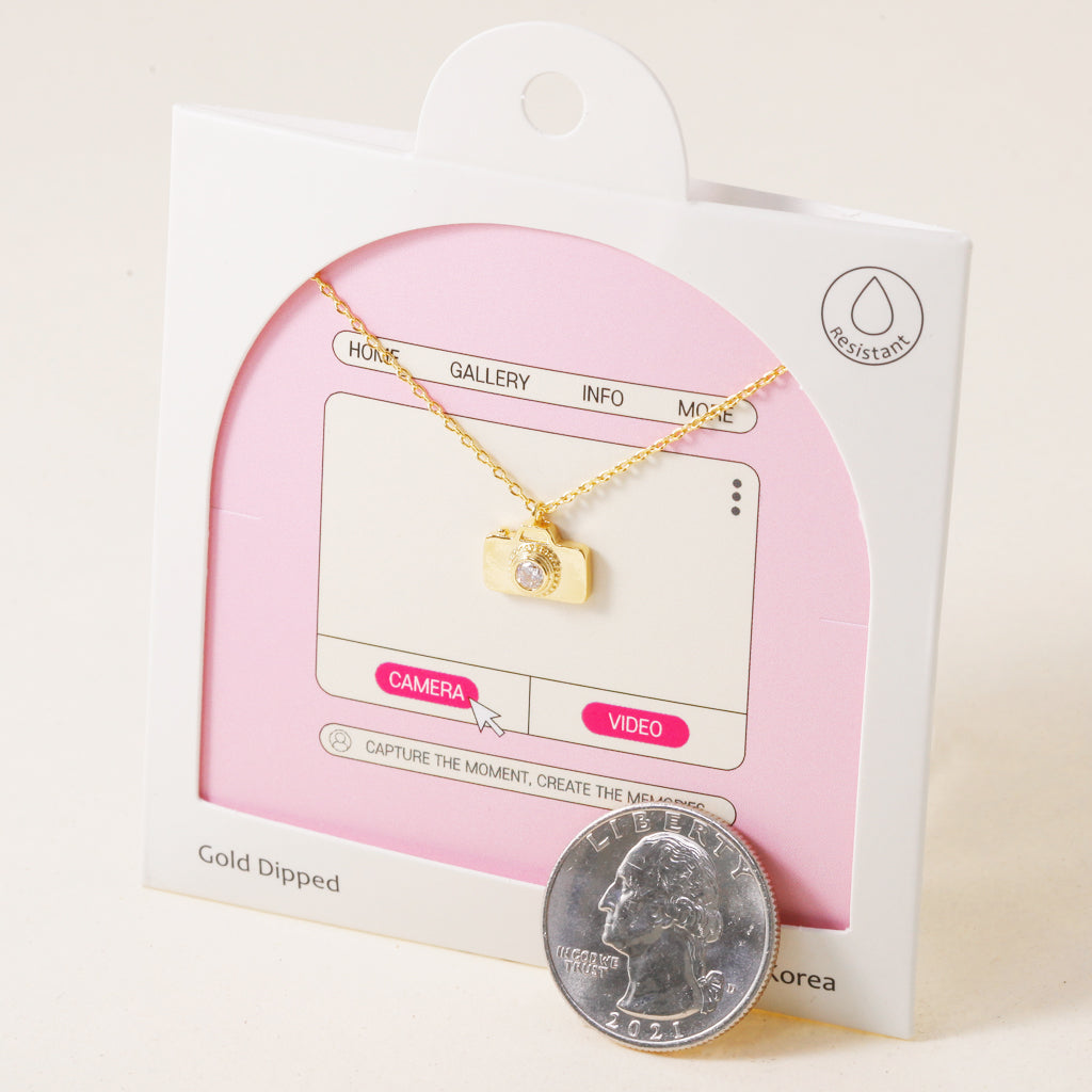 This gold-dipped camera necklace is perfect for photography lovers and memory-makers alike. Smile wide—this one's for your highlight reel.