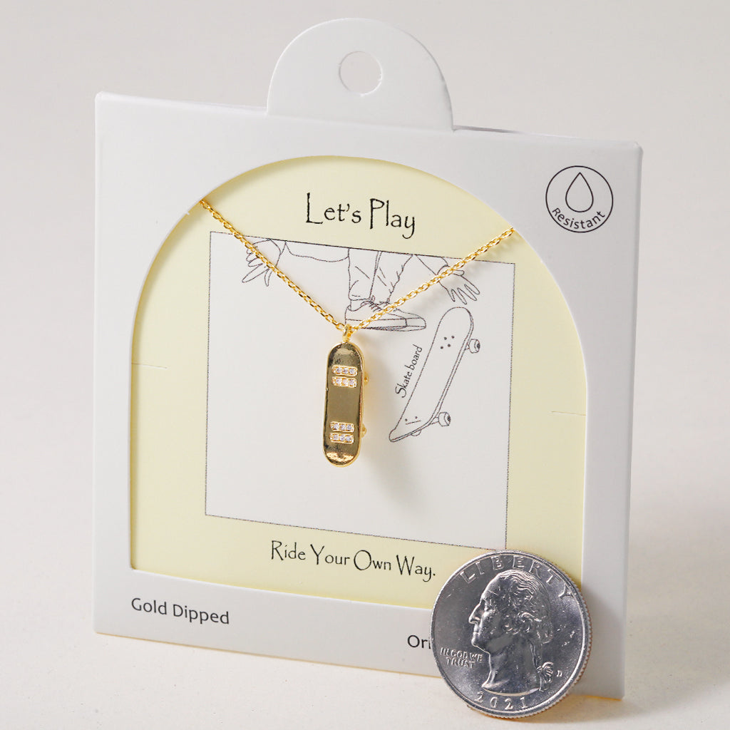 A sleek mini skateboard charm for the skater soul. Gold-dipped and full of attitude, it's your new go-to for rolling through life in style. You don’t only get to ride them, you get to wear them too!