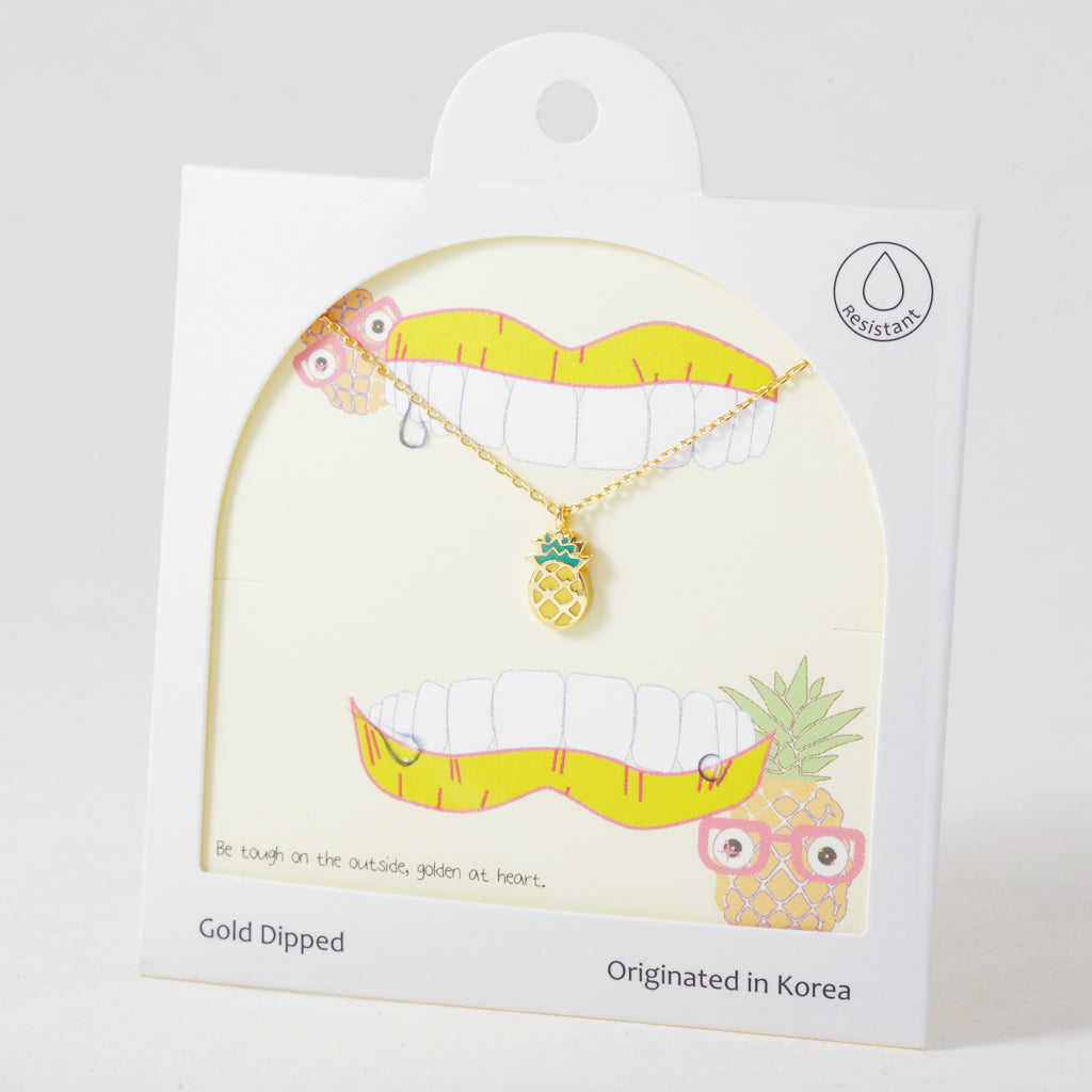 Get a taste of summer all year long with this fun pineapple pendant necklace. A splash of fruity style and gold dipped shine make it the ultimate pick-me-up accessory!