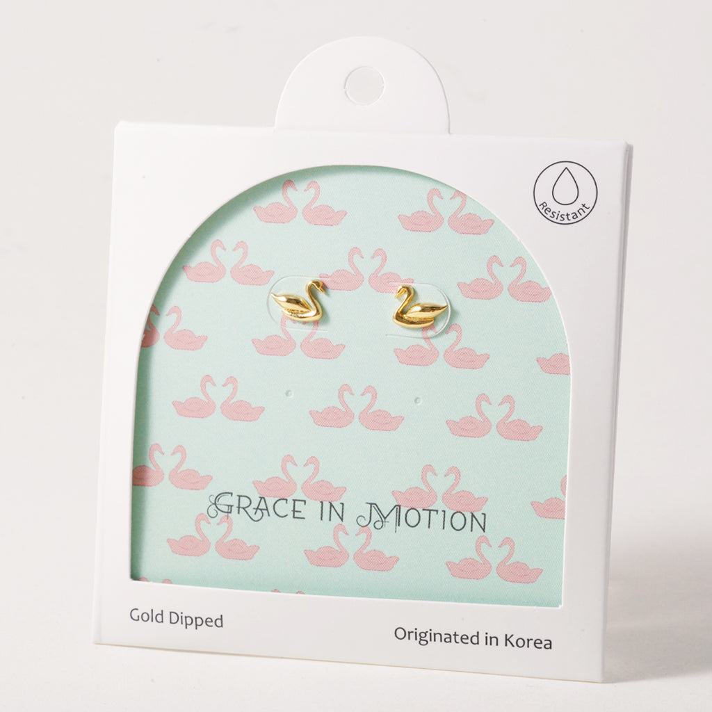 Step into elegance with the Swan-derland earring. Highlighting a sleek swan over a dreamy background of floating swans, this piece captures the beauty of poise and movement.