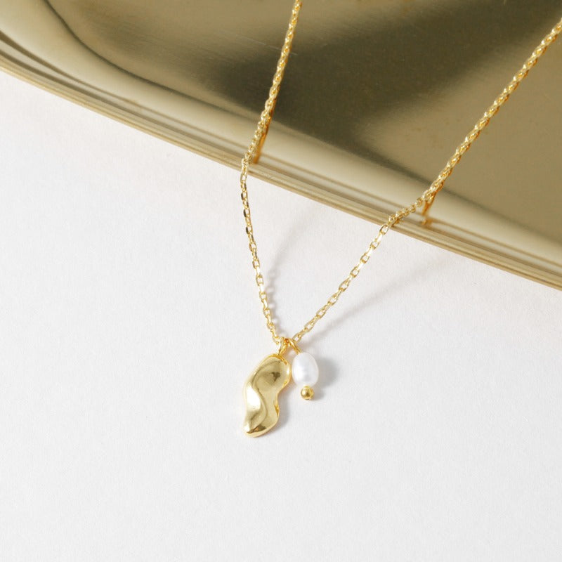 Delicate and modern, this necklace features a unique wobbly charm paired with a single lustrous faux pearl. Its asymmetrical design adds a playful yet elegant touch, making it perfect for layering or wearing alone. A subtle statement piece that brings contemporary charm to any outfit.
